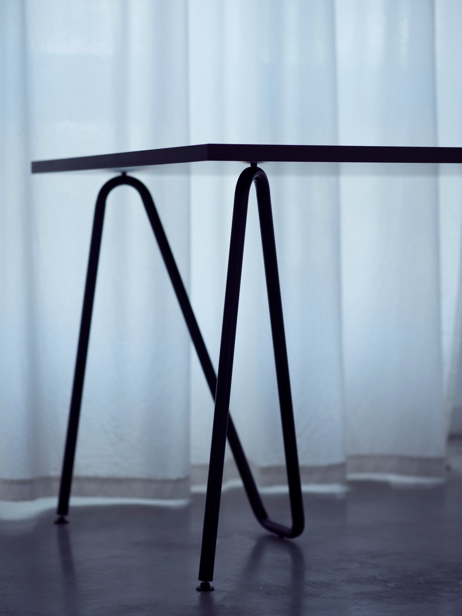 Les tréteaux Sinus portent la signature du designer Daniel Lorch. Lorch travaille la jonction entre structure et forme : chaque courbe répond à une contrainte mécanique, chaque angle optimise la répartition des charges. Cette approche rationnelle produit des objets d'une évidence formelle rare.