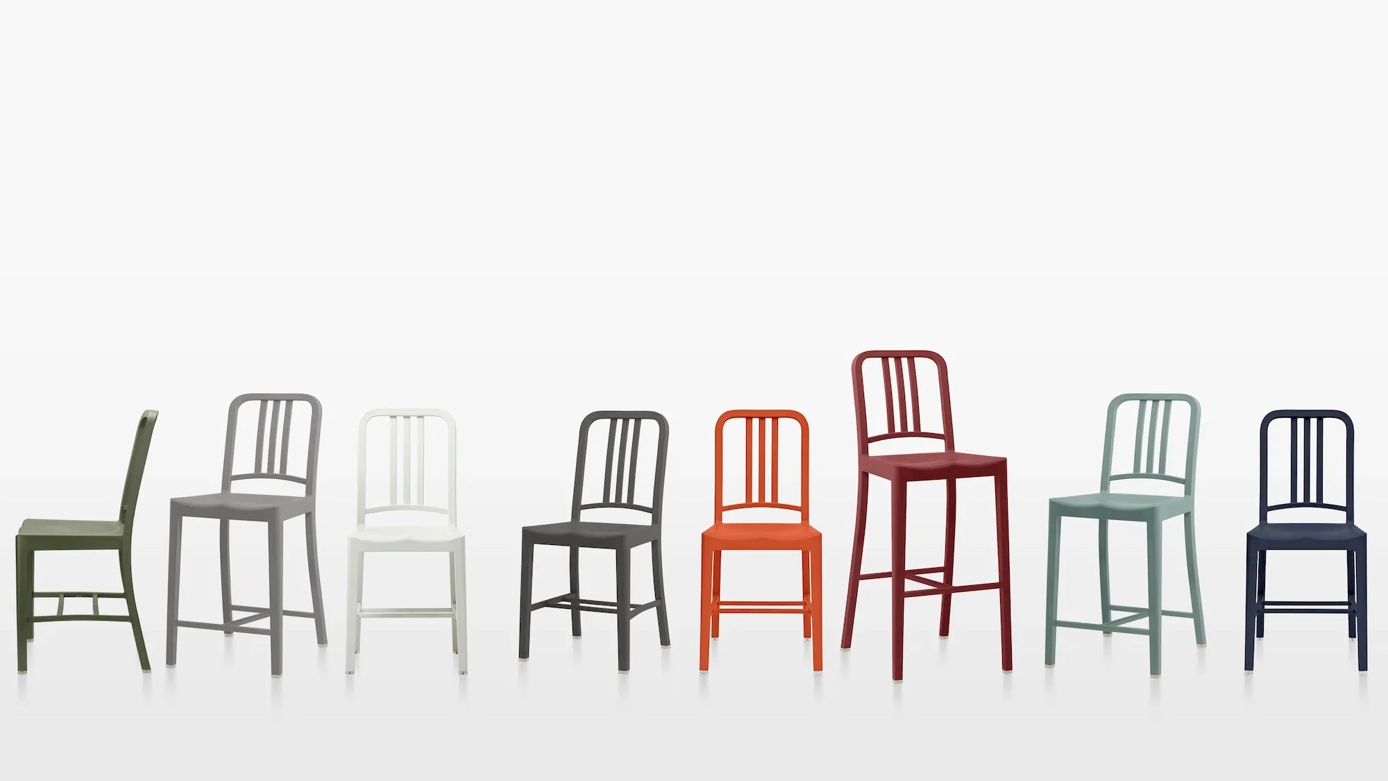En 2006, Coca-Cola s'est adressé à Emeco pour résoudre un problème environnemental : transformer par "upcycling" des bouteilles en plastique usagées en un élément structurel iconique, conçu pour durer. Emeco a relevé le défi, en prenant du plastique PET recyclé souple, initialement destiné aux tissus et textiles éphémères, pour construire une chaise robuste, monobloc et résistante aux rayures. Le processus de développement a nécessité à la fois détermination et patience. Finalement, en 2010, la chaise 111 Navy a été lancée.