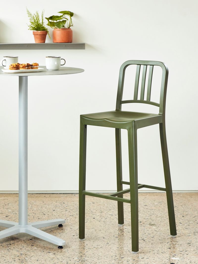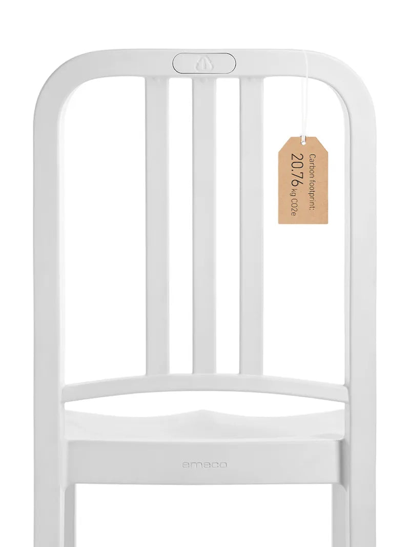 FIN DE VIE La 111 Navy Chair est 100% recyclable par Emeco pour créer une nouvelle chaise du même modèle ou d'un modèle similaire.