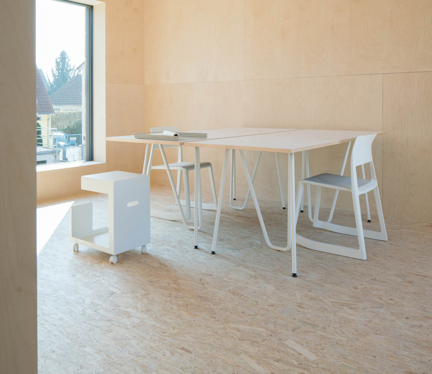 Le design des tréteaux Sinus repose sur une idée fondatrice : repenser un support de table à partir des paramètres les plus élémentaires — portance, appui, surface — tout en améliorant la simplicité, l’efficacité du matériau, la stabilité et la flexibilité d’usage.